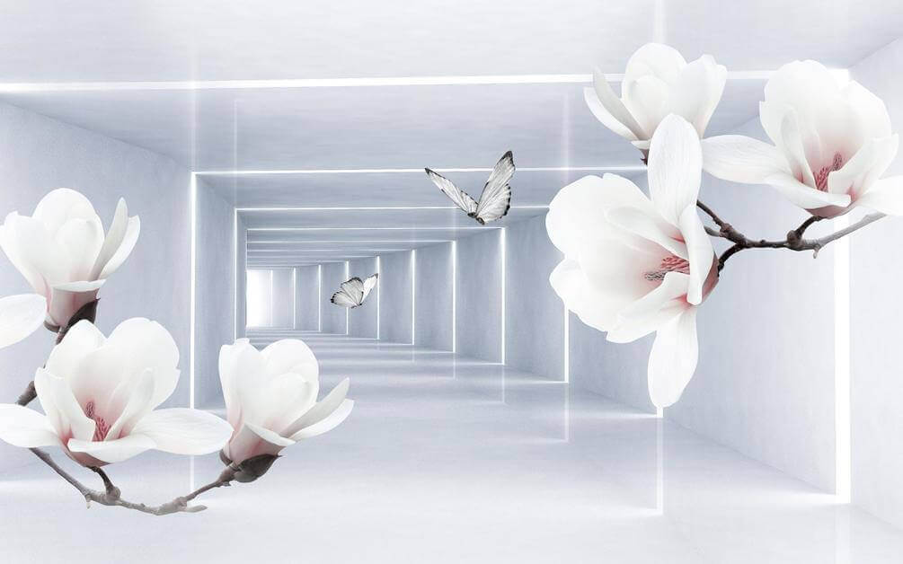Fotooboi Cvety Magnolii V Tonnele Tematika Dlya Kuhni Art Oboi