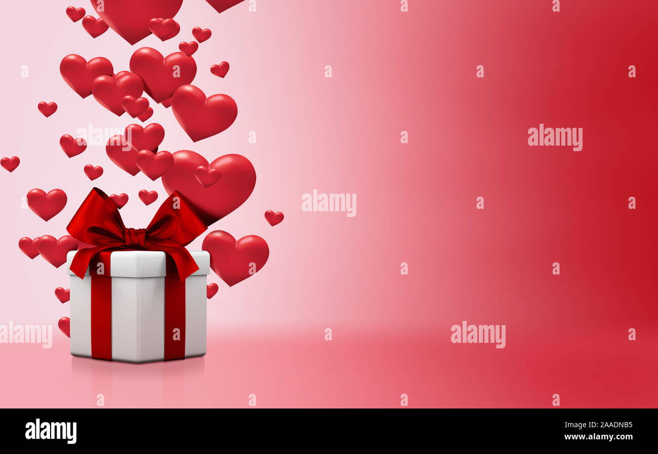 Valentine S Day Concept Background Photoshop Illustration Red And Pink Hearts With White Gift Box Cute Love Sale Banner Or Greeting Card Stock Photo Alamy