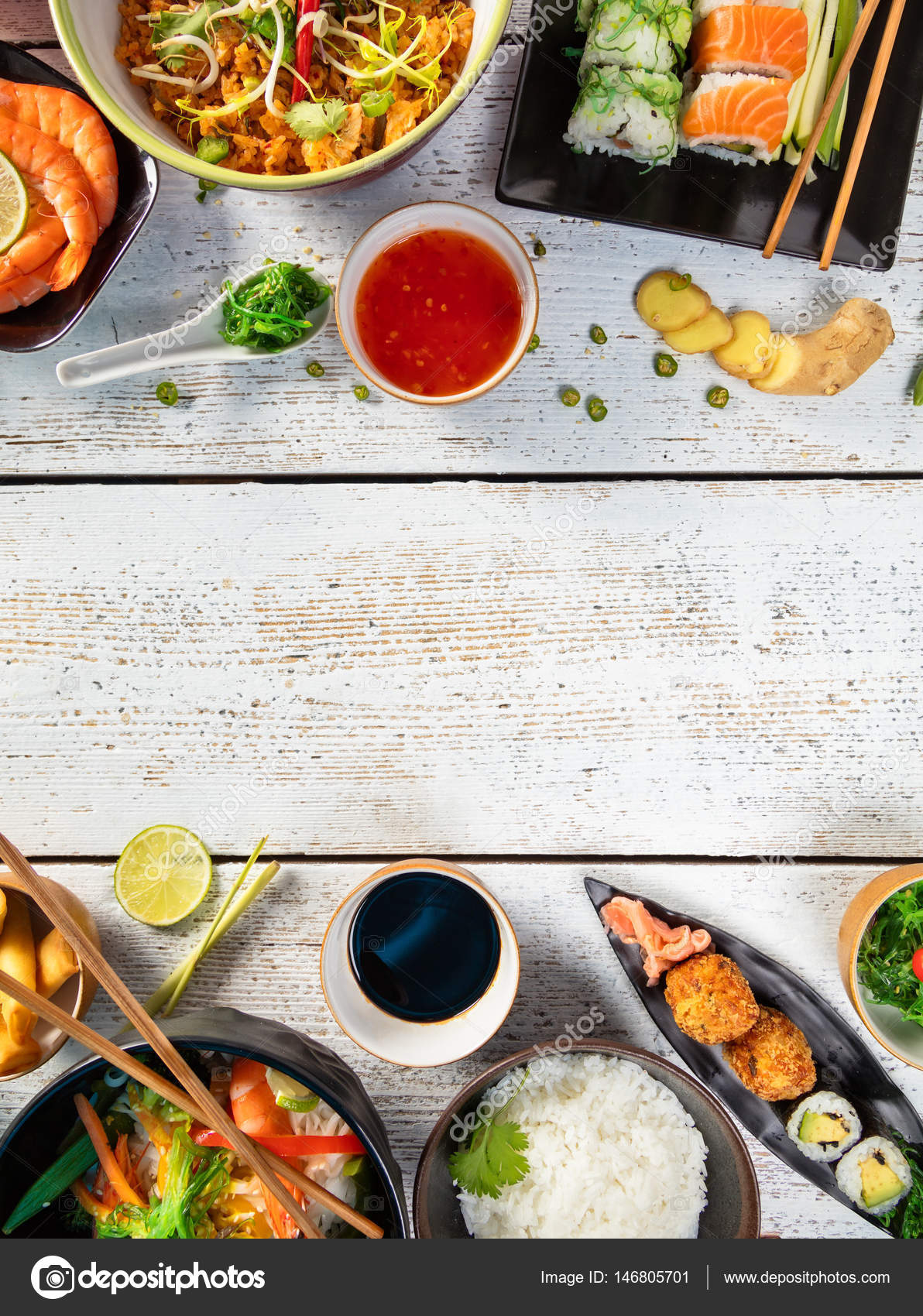 Aziatskaya Eda Sluzhila Na Derevyannom Stole Vzglyad Sverhu Kosmose Dlya Teksta Stokovoe Izobrazhenie Izobrazhenie Naschityvayushej Stole Kosmose 86739085