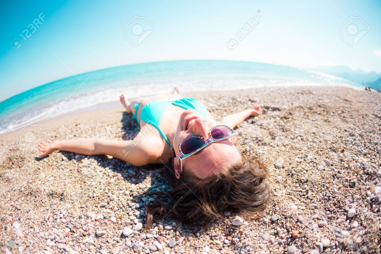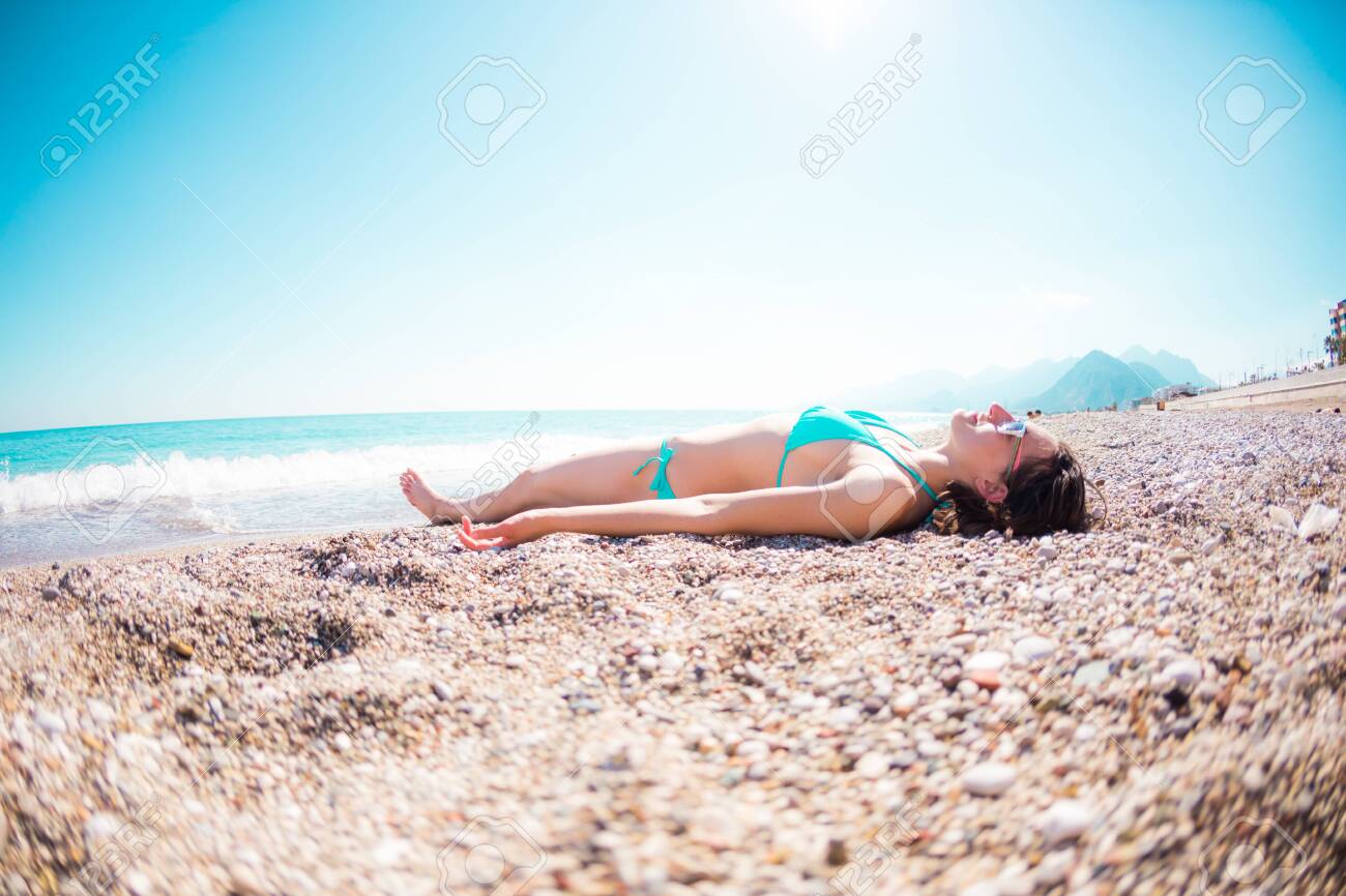 Girl Lying On The Sand Near The Sea Holidays On The Ocean Coast Stock Photo Picture And Royalty Free Image Image 129101341