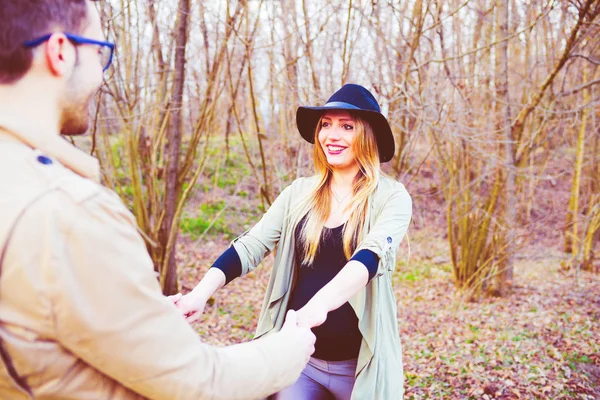 Stoyashie V Pole Paren I Devushka So Spiny Fotografii Na Avu