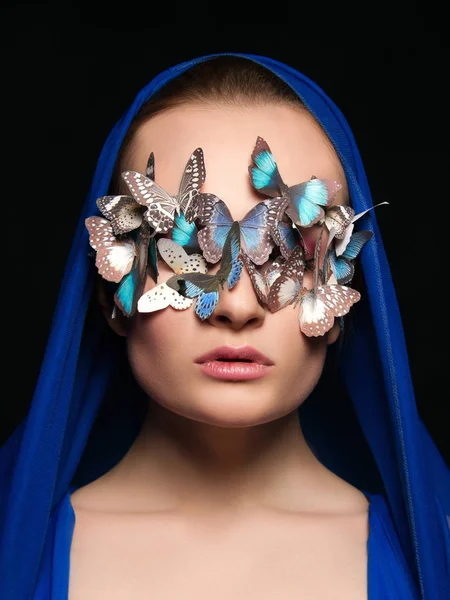 Golubaya Babochka Na Lice Devushki Pod Cvet Ee Golubyh Glaz Iskusstvo Glaza Glaza Cvet Glaz